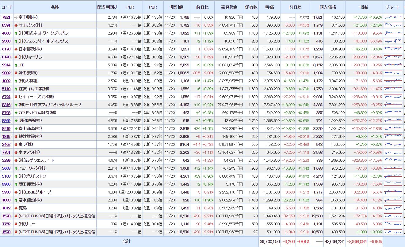 ・含み損銘柄数:20(前日比+00)