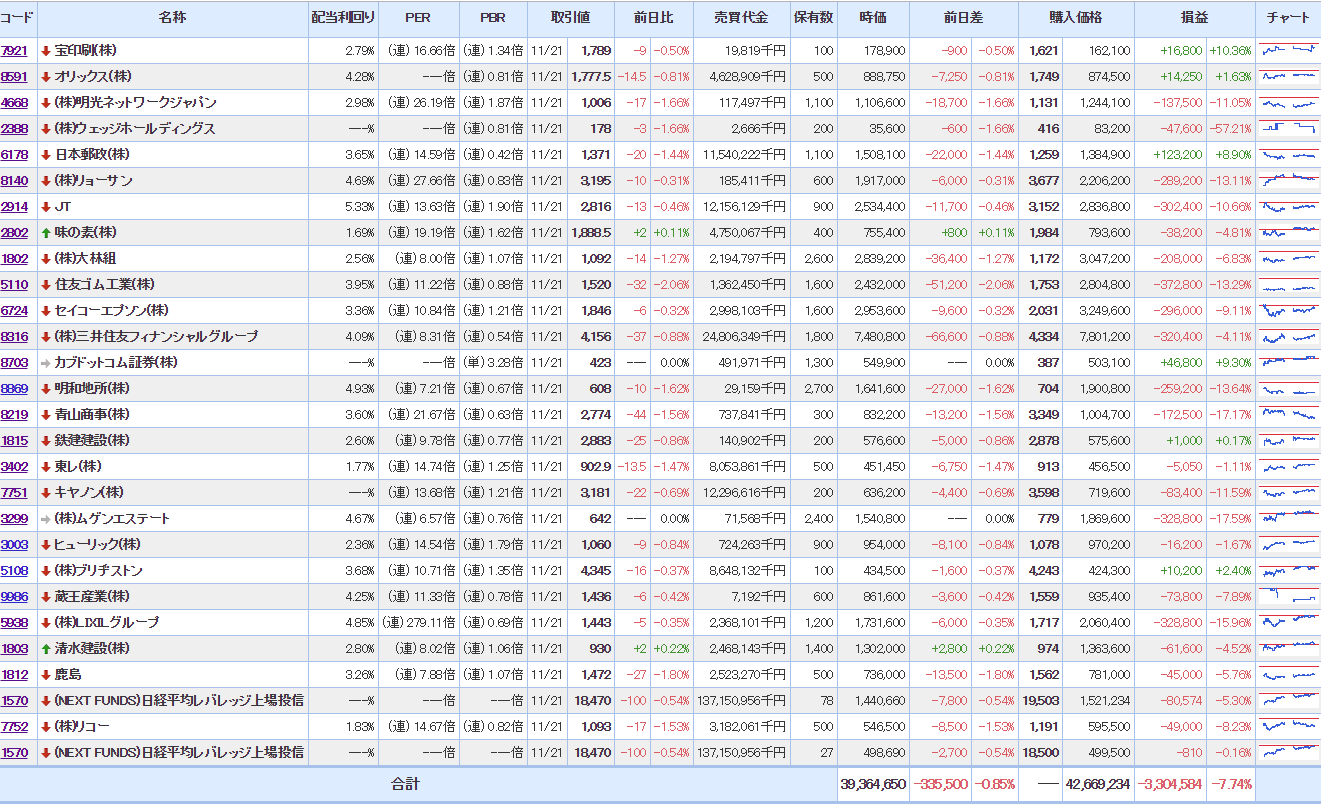 マイPFは、大幅に含み損を増加させ意気消沈状態。