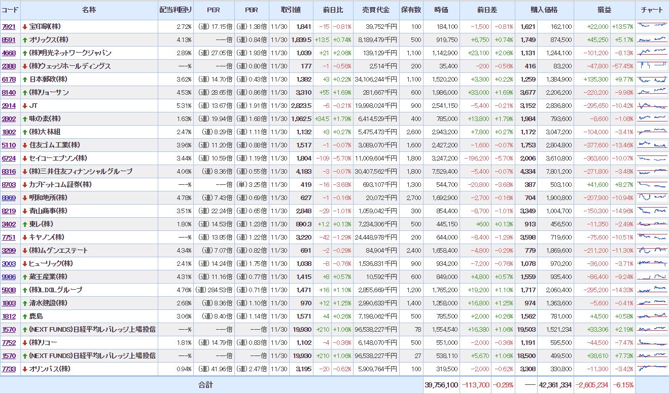 11/19-11/23:△2,853,784→△3,101,684 △268,350(実現益+24,542)×配当+12,600