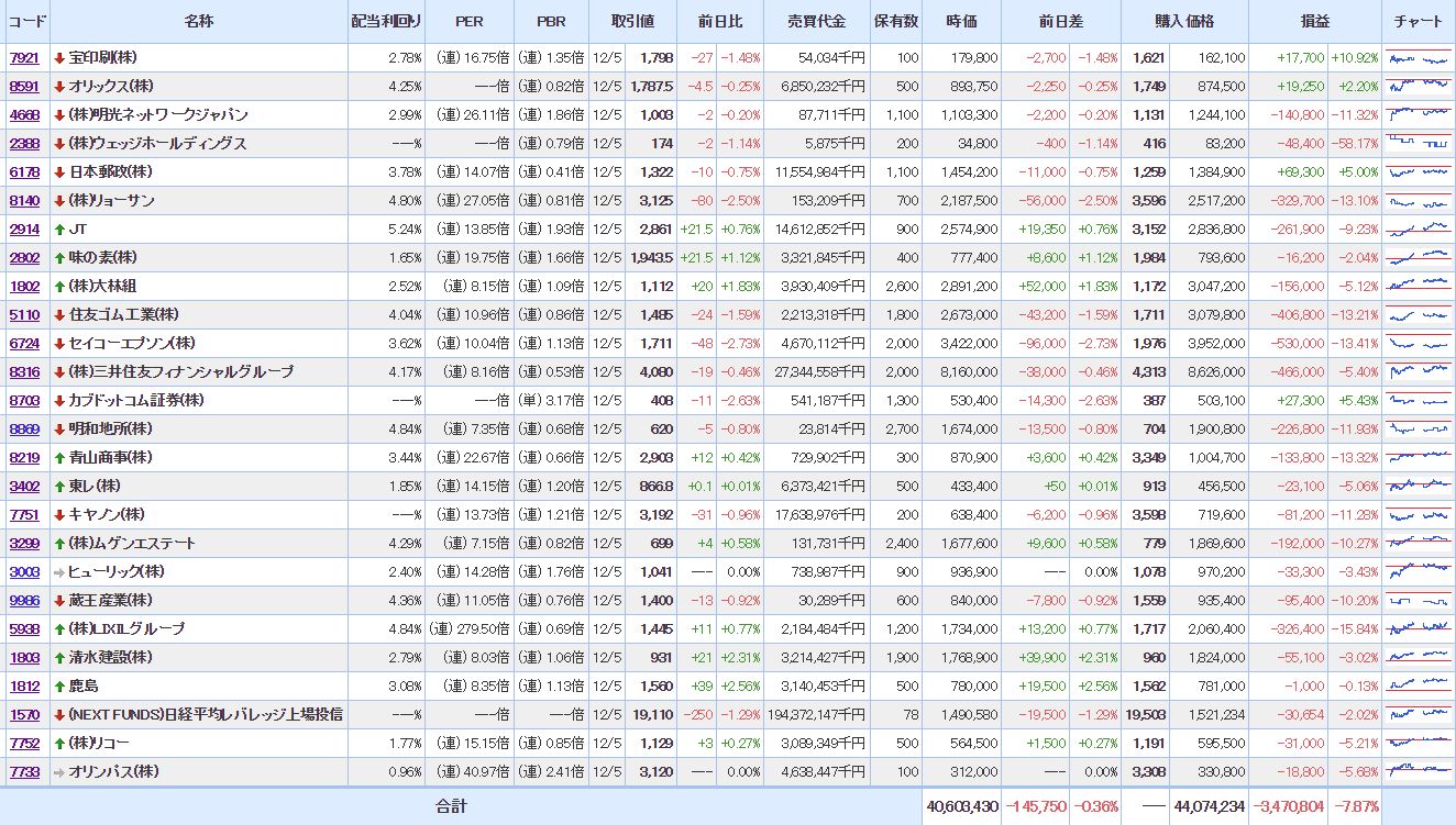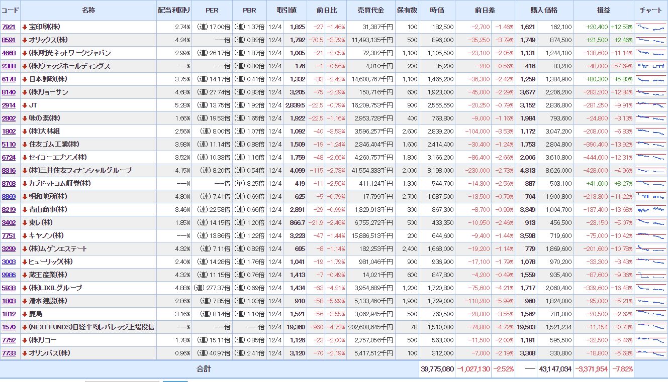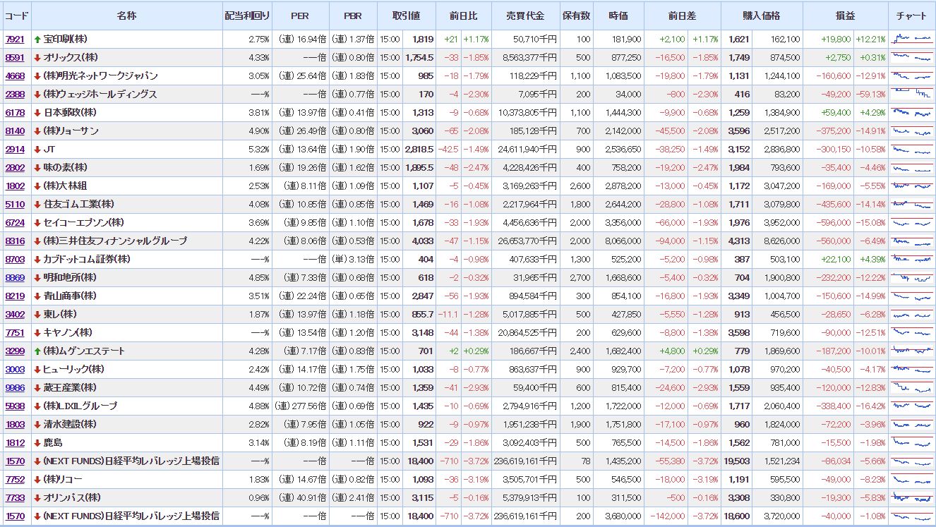 マイPFは、大幅に含み損を増加させ意気消沈状態。
