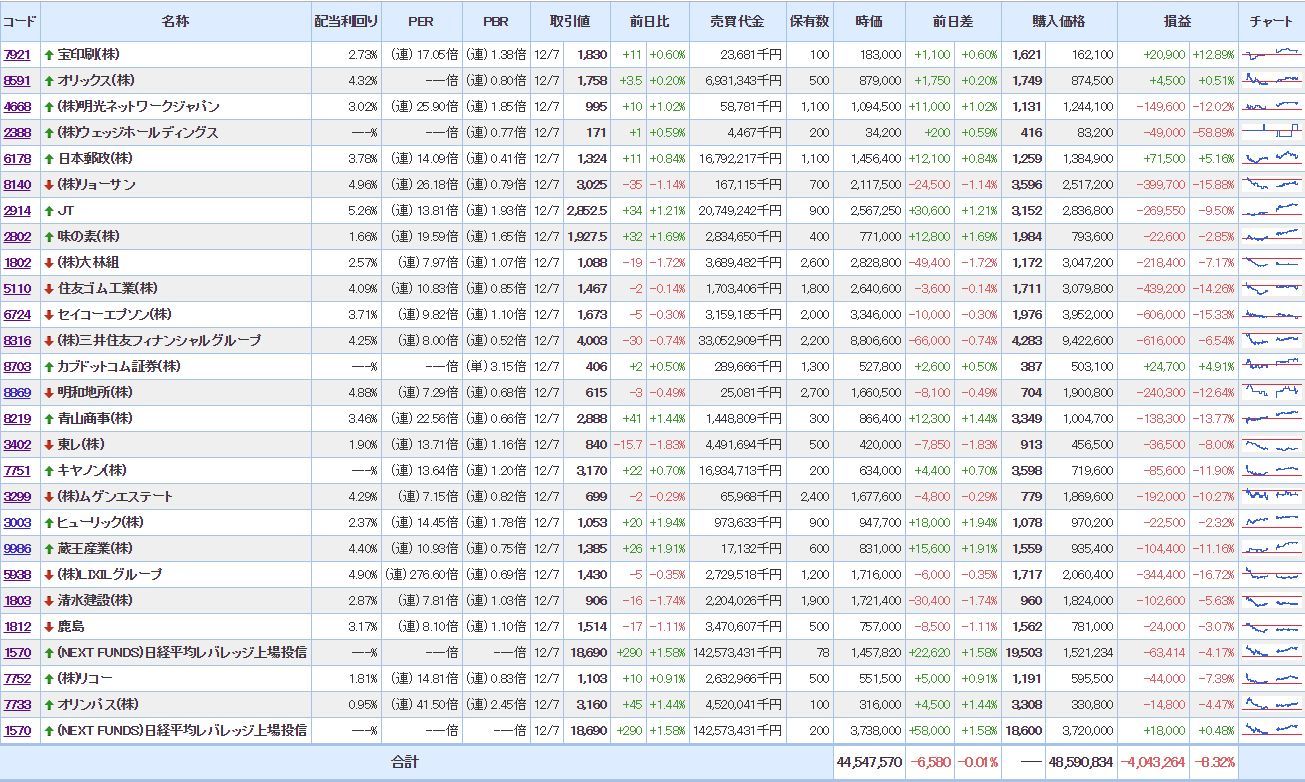 12/03-12/07:△2,604,834→△4,043,264△1,438,430(実現益+318,268)×配当+265,900