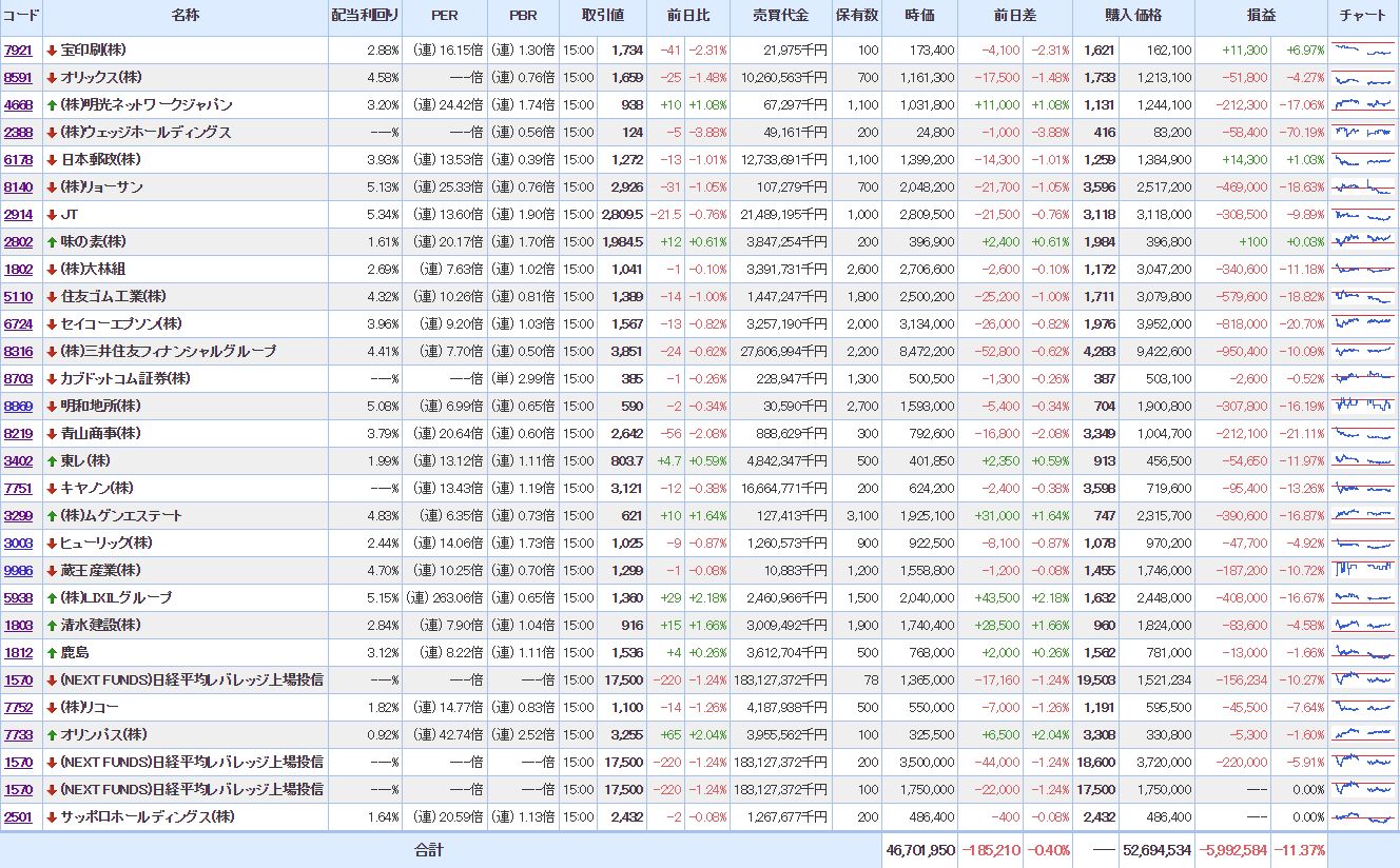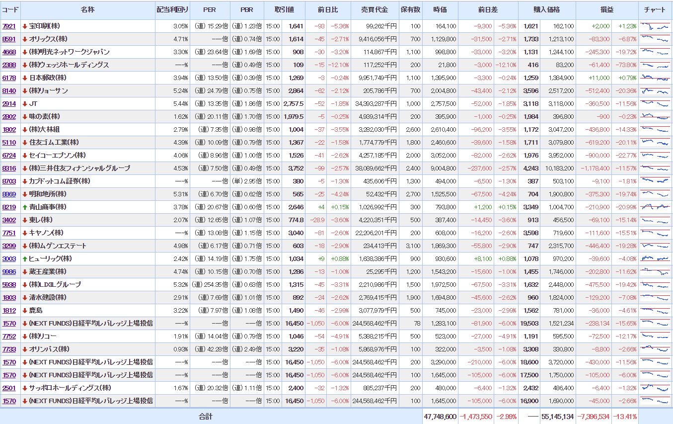 マイPFは、大幅に含み損を増加させ意気消沈状態。