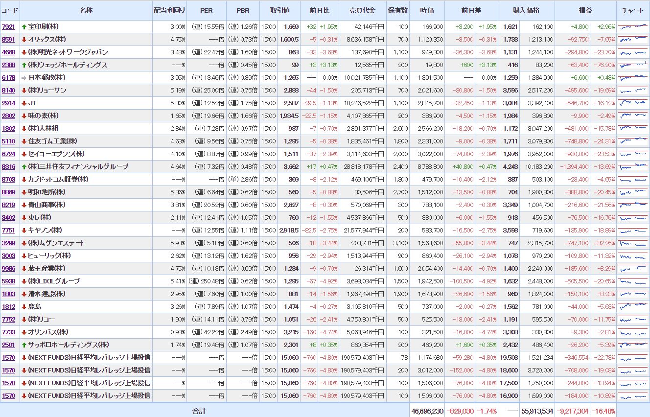 → やっぱり、大幅下落。