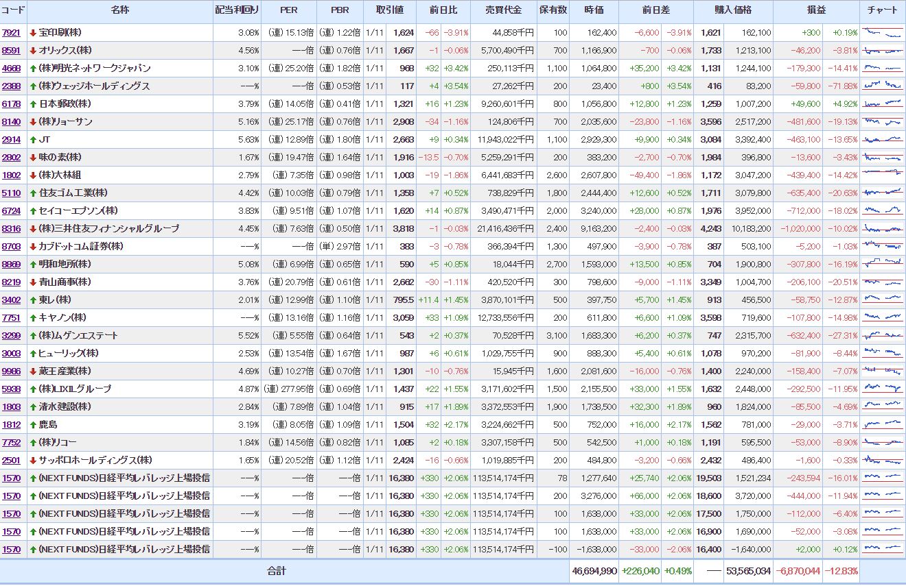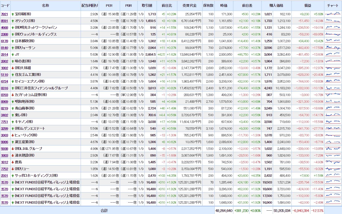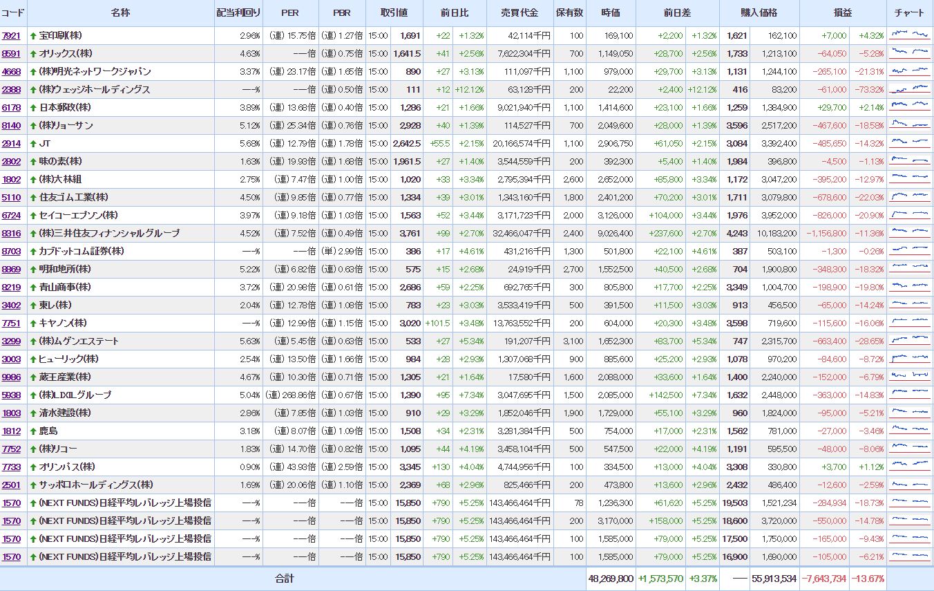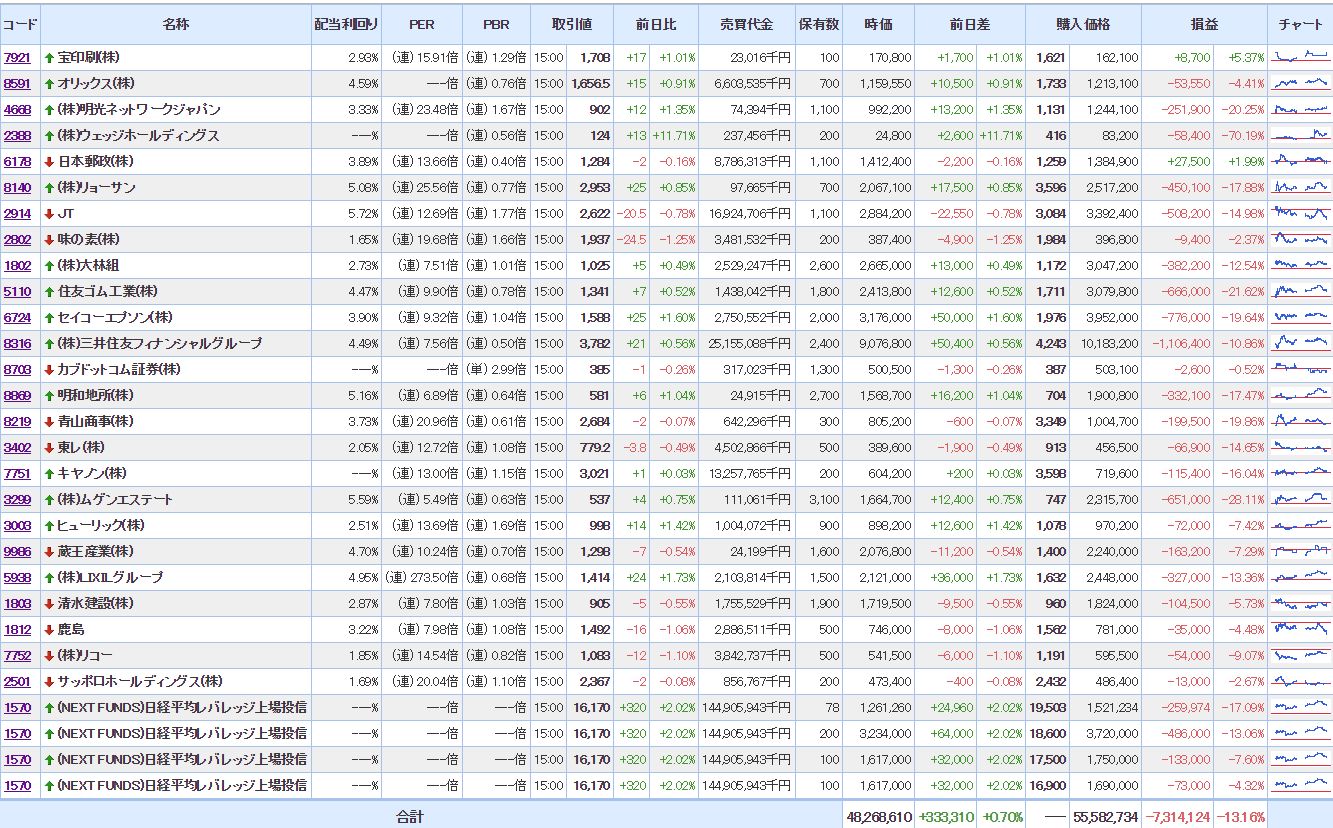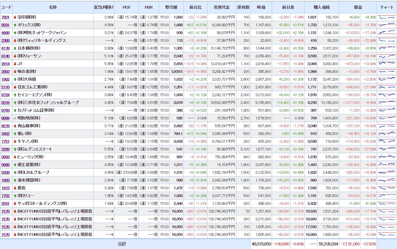 ・含み損銘柄数:27(前日比△00)