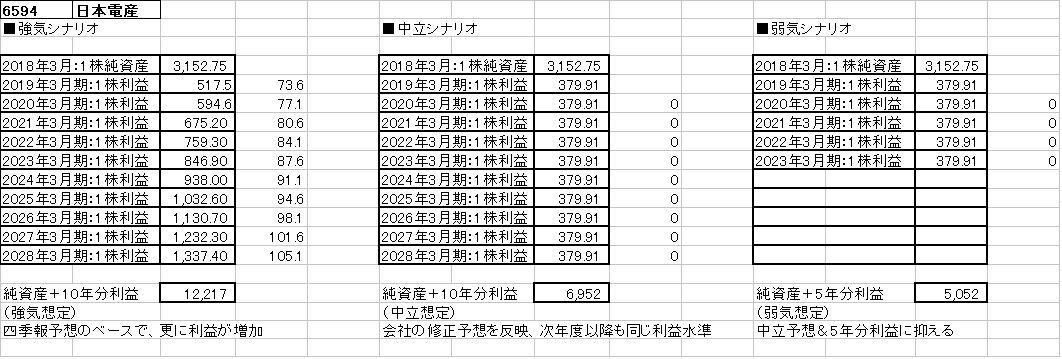 強気:12,217円(1株純資産+10年分の利益、修正前の利益増加率が継続前提)