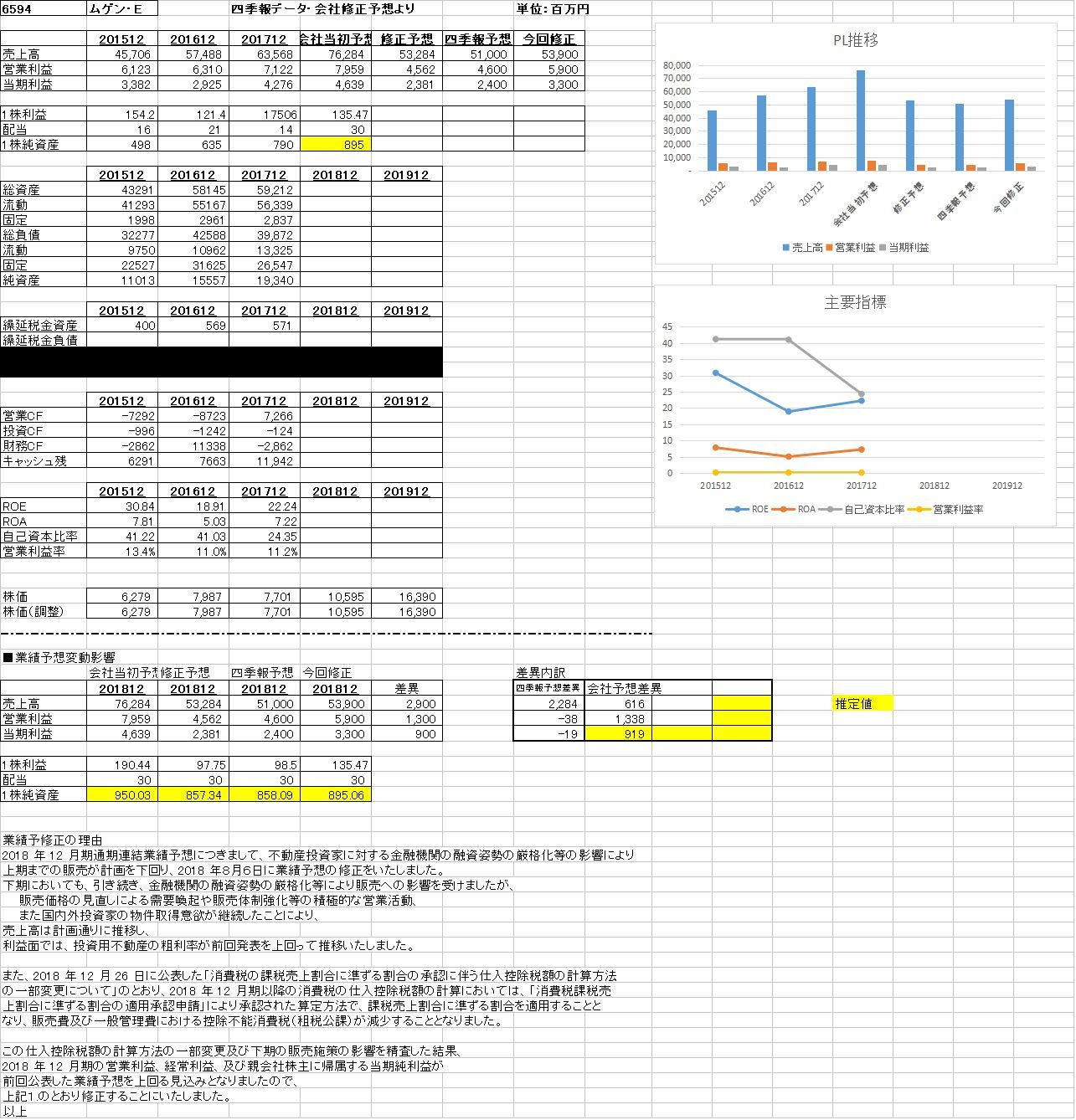 保有株の問題児がここにきて、上方修正を出してくれました。