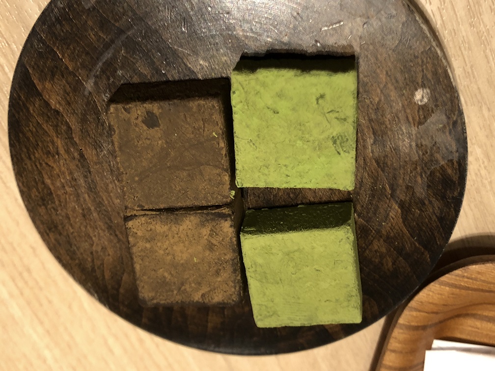 ほうじ茶と抹茶の生チョコですね。