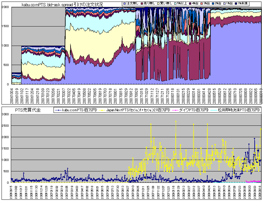 今回から、ダイワPTSと、松井即日決済取引PTSの売買代金もグラフに追加しました。