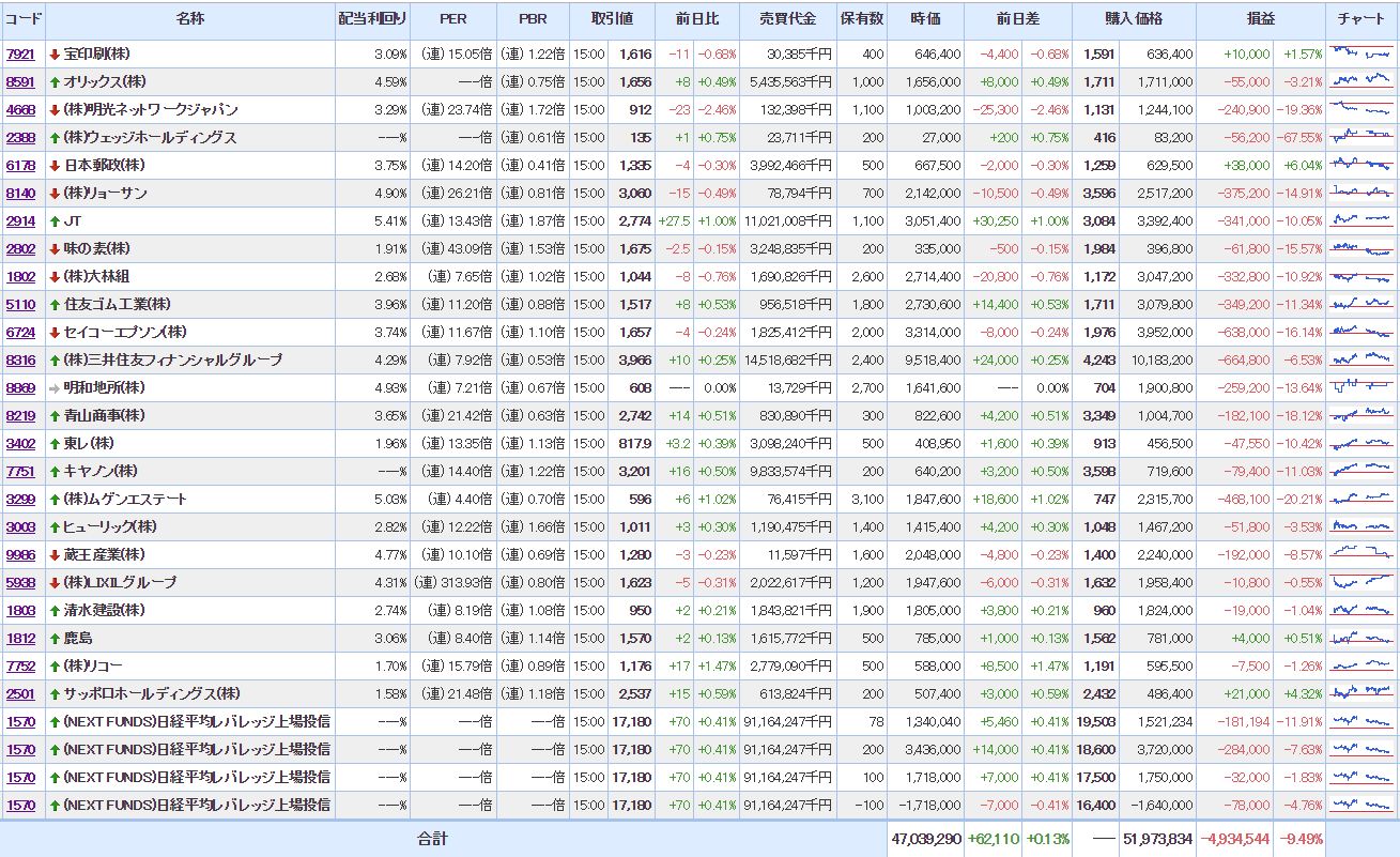 -4,985,664→-4,934,544(+62,110)(実現益+)うち配当+