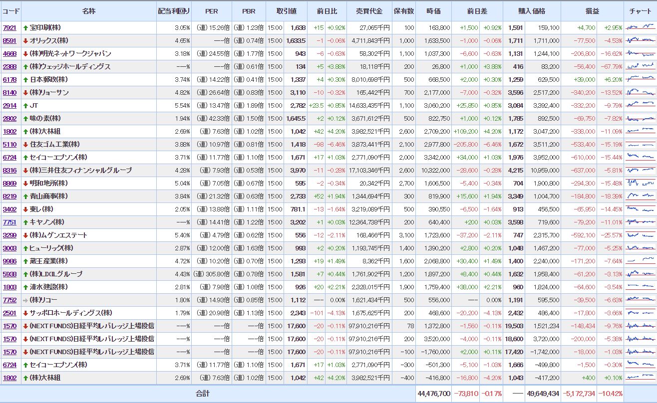 マイPFは、大幅に含み損を増加させ、意気消沈。