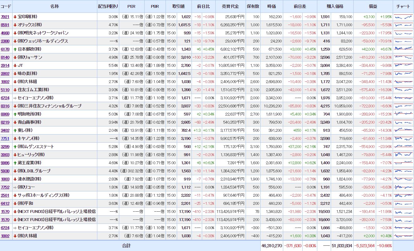 (薄利撤退。建設株にポジションを傾けすぎているので修正したい。)