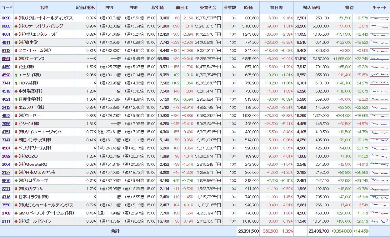 ■6861 キーエンス @51,870 → @68,850 +32.74%
