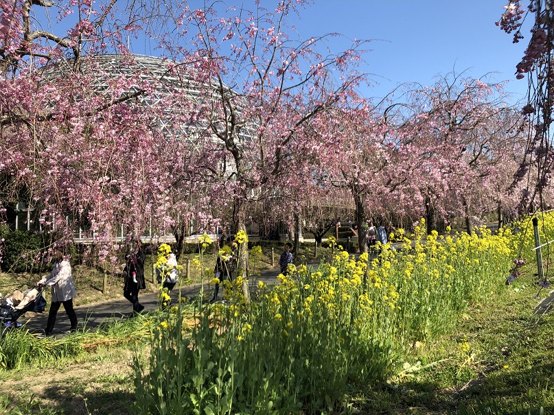 着ぐるみを見ている、小さな女の子供が、かわいいですね。