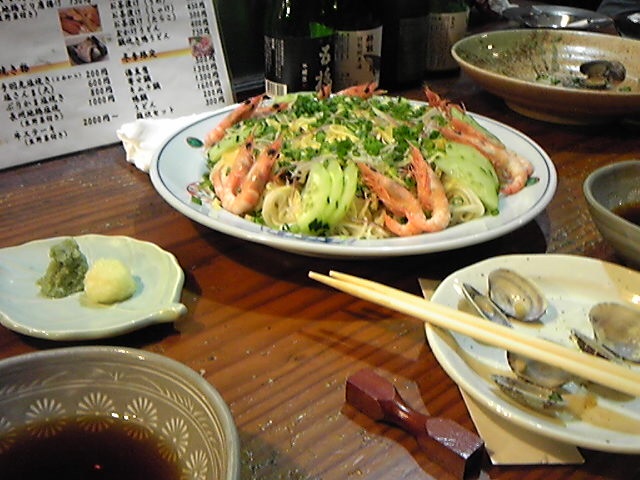 もう一つは、シメでそうめん風の大皿でしたが、