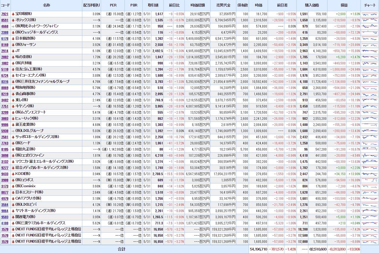 05/06-05/10:△4,770,800→△6,732,750 △1,961,950(実現益+ 60,889)×(内、配当16,500)