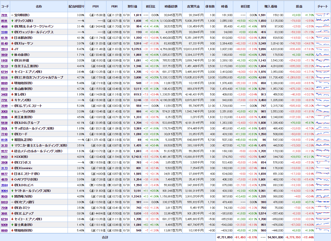 (優待100株残しで売却。その後の下落を見て正解だったかと思った)