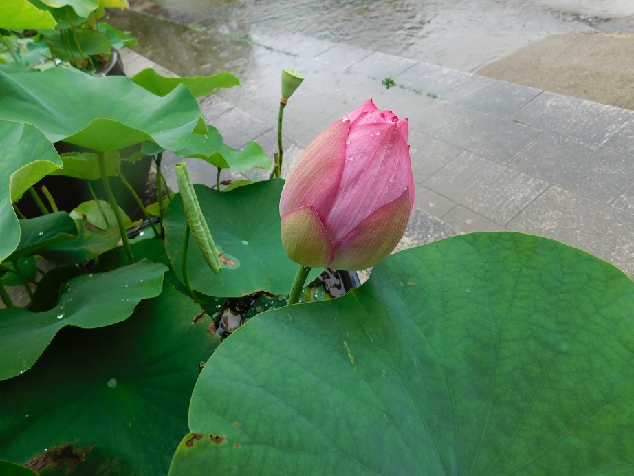 雨の後、水たまりがきれいなハス。