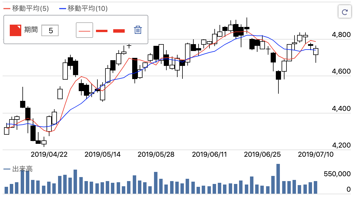 5日平均線の流れを見ると、少し下がって上昇すると予想する。