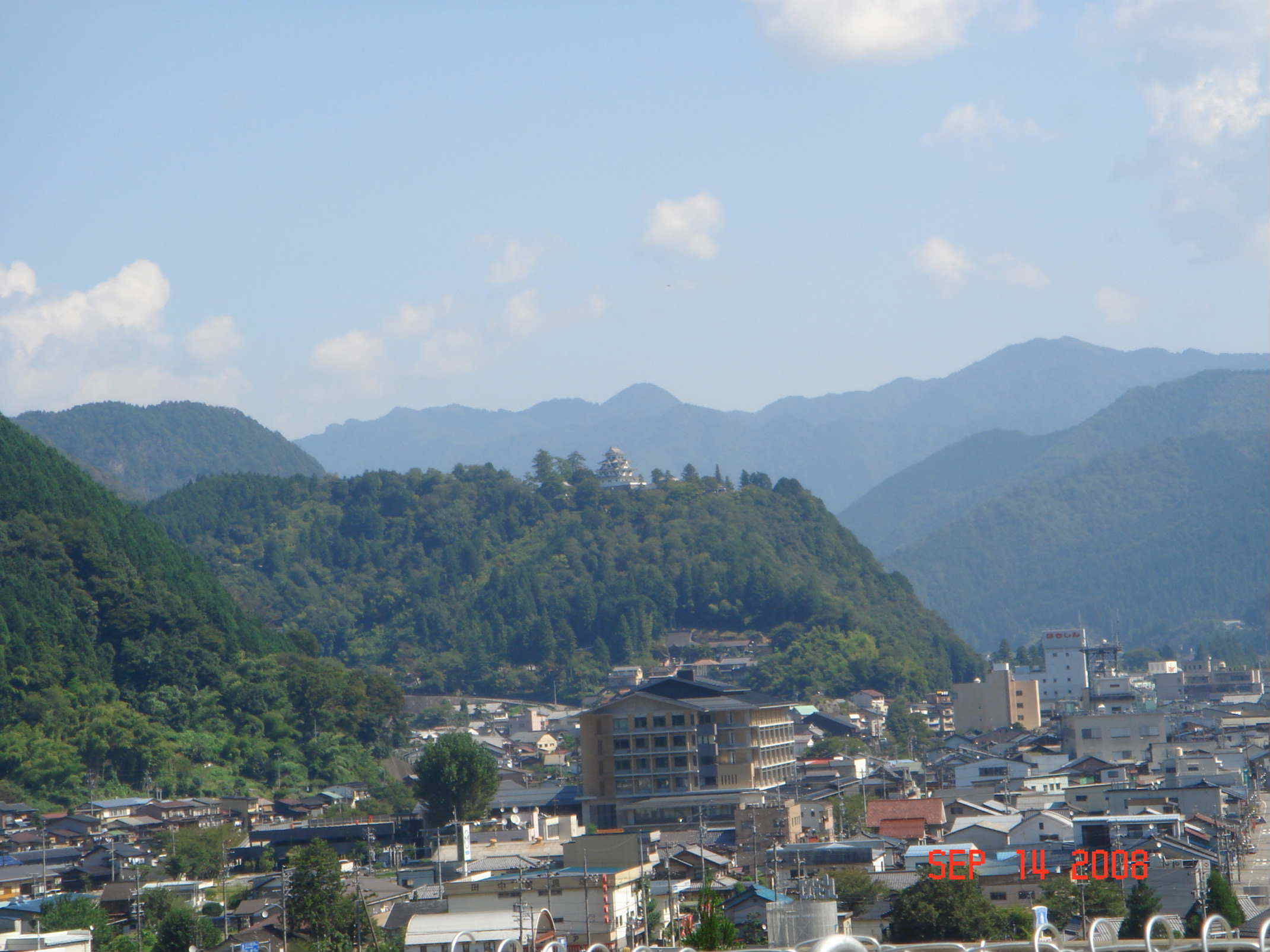 渋滞している間 暇だし、渋滞しないと高速から写真とれないので1枚写真とりました。郡上八幡城が小さいですが写ってます。