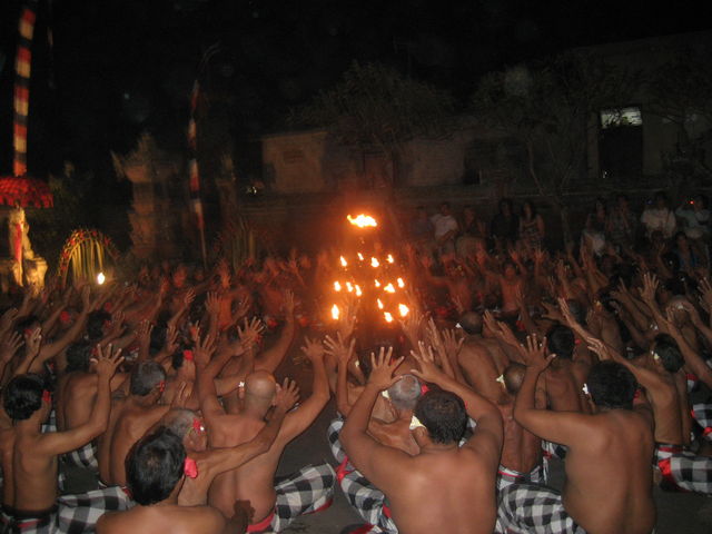 部屋でシャワーを浴びたりして、18:30に集合し、ケチャダンスを見に行った。