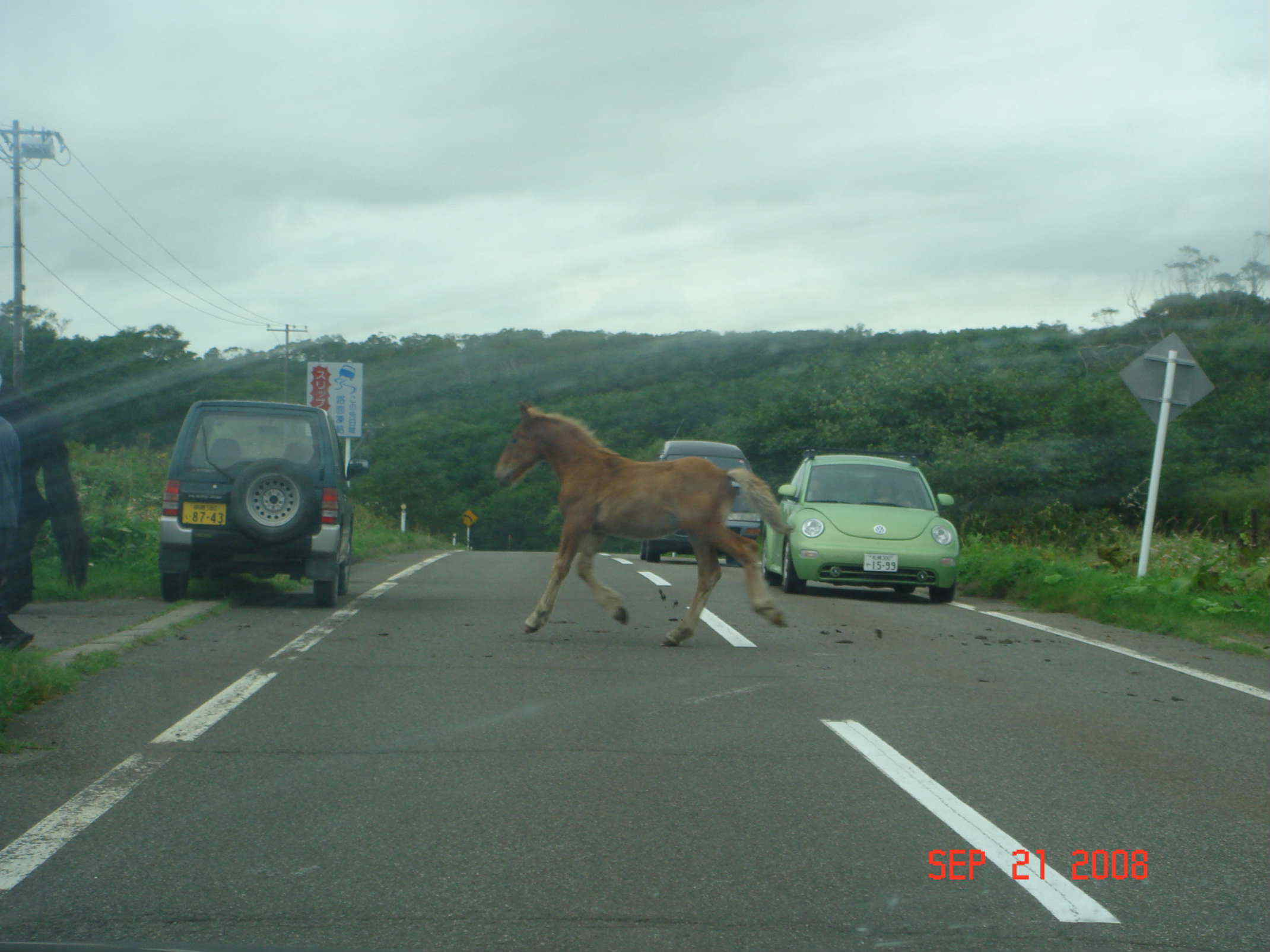 馬が優雅に国道を横断中でした。
