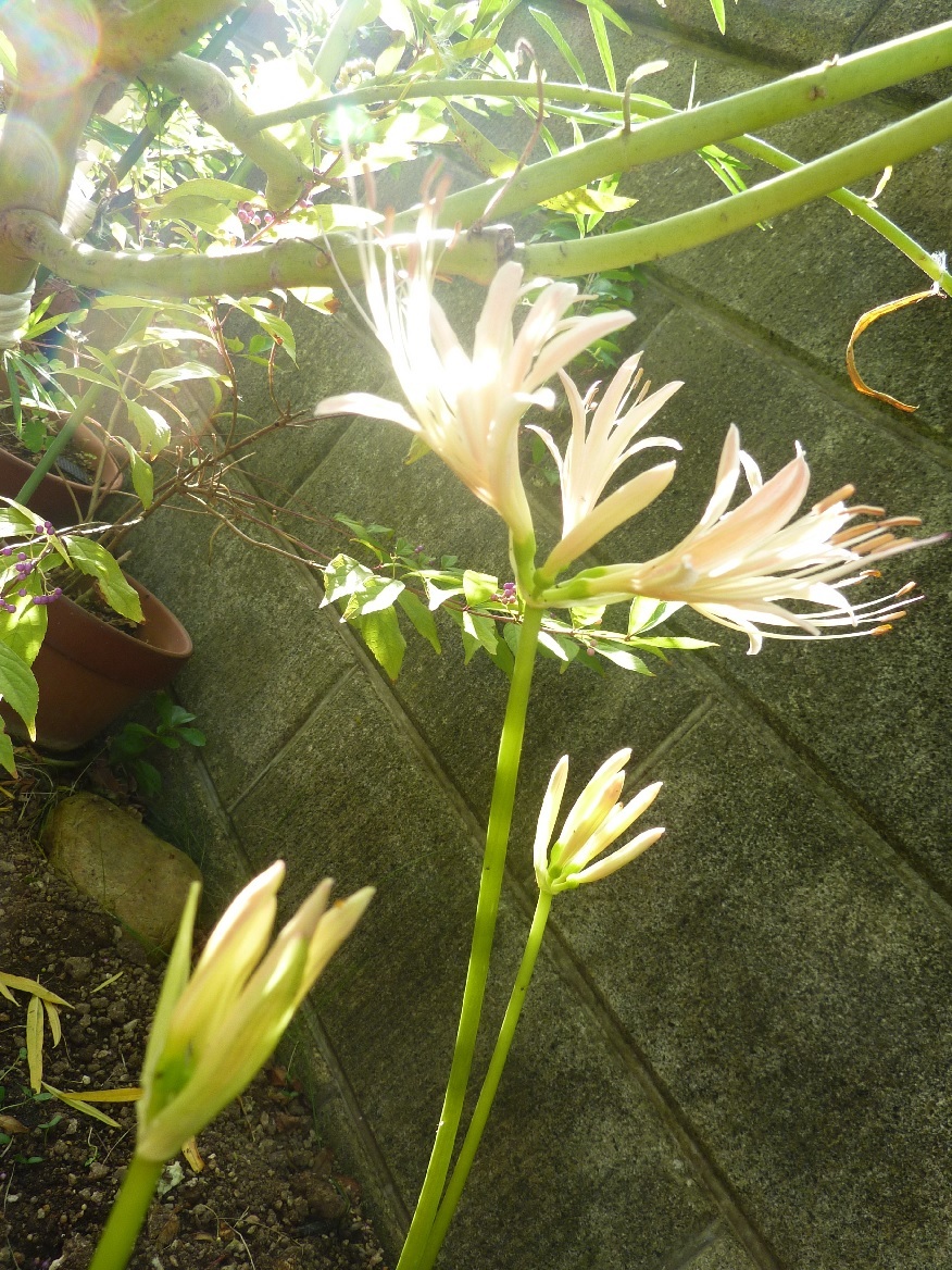 庭に赤の彼岸花だと「いかにも!」という感じなので、