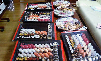 ◆画像を見てくださいな♪別室で出番を待っていた♪お寿司と刺身等の鉢盛りなんですけど♪これ全部あまりますた♪