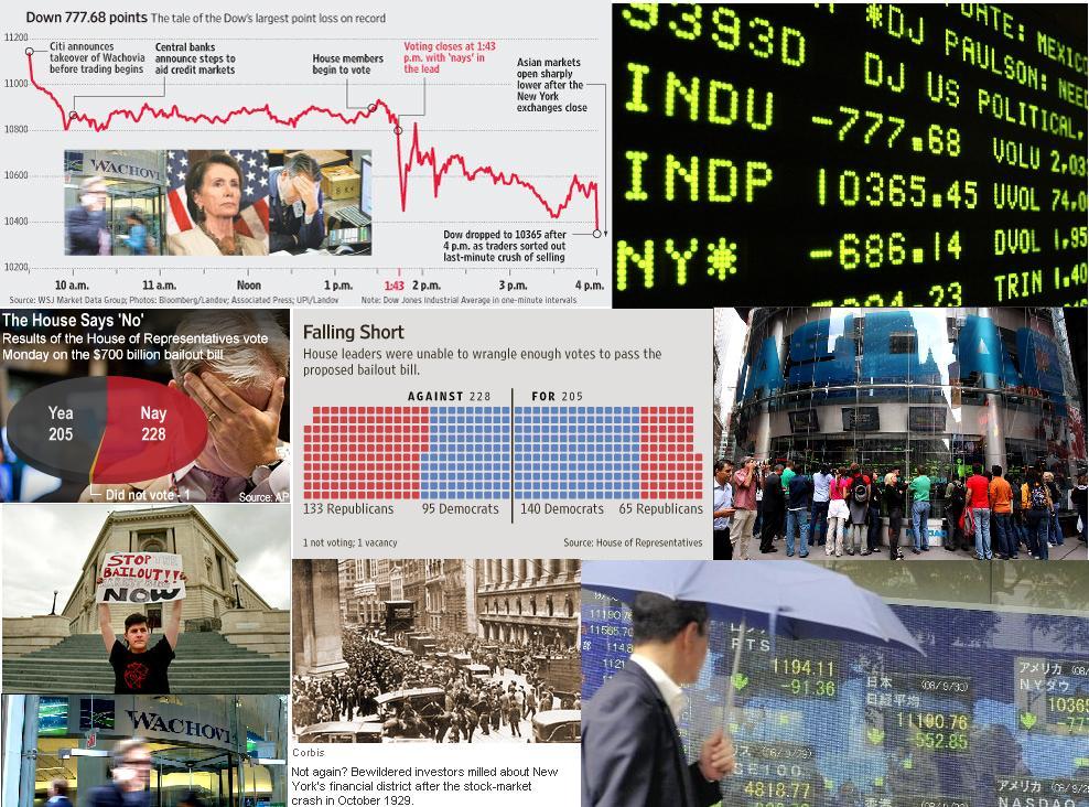 ・米金融安定化法案否決で世界の株価急落、ダウ過去最大の下げ