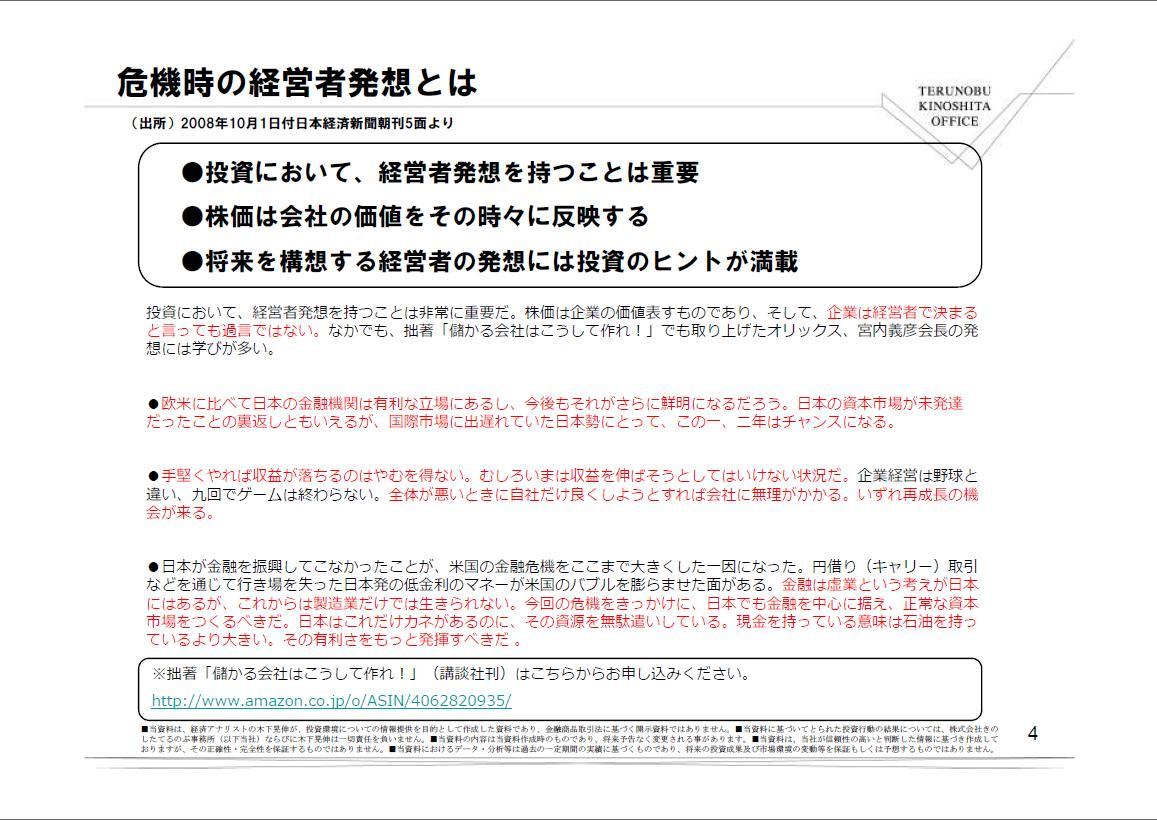 その後のリーマン・ブラザーズ破綻によって株高のチャンスが到来したと考えている。