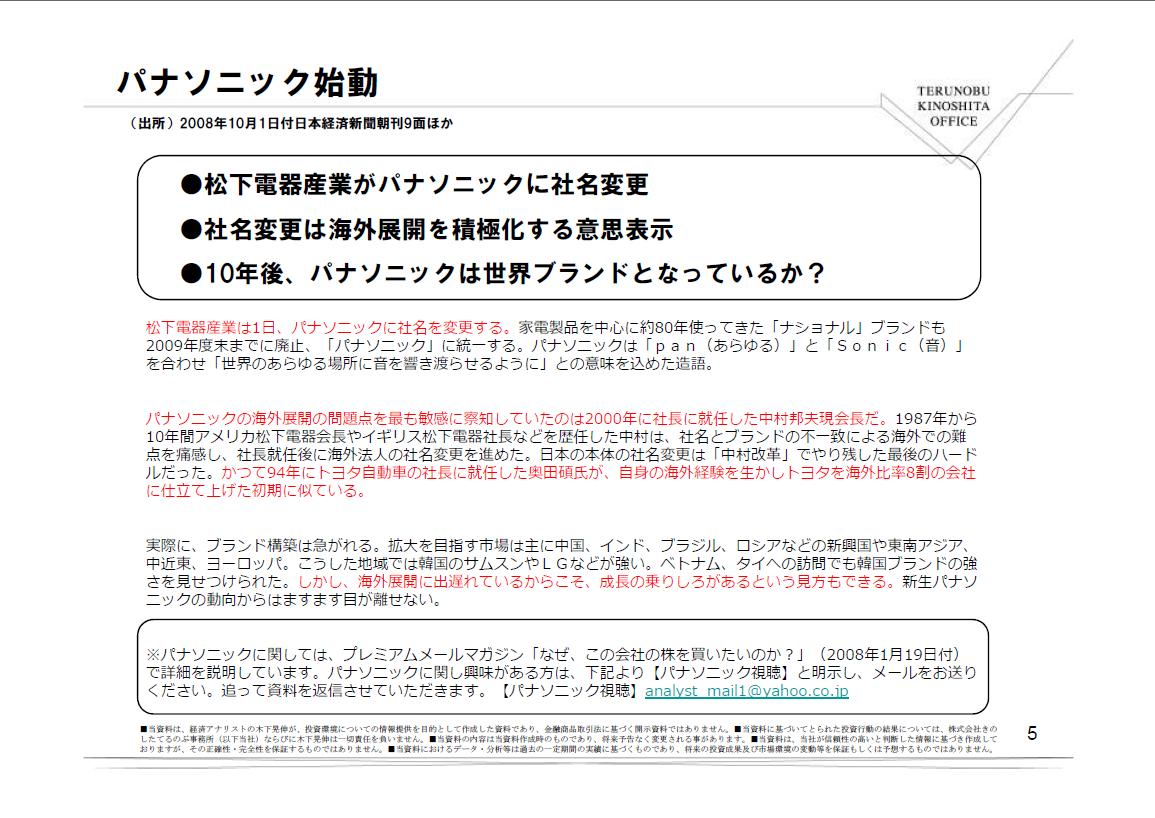 それから50年の時を経て、名実とともに松下電器産業がパナソニックとして