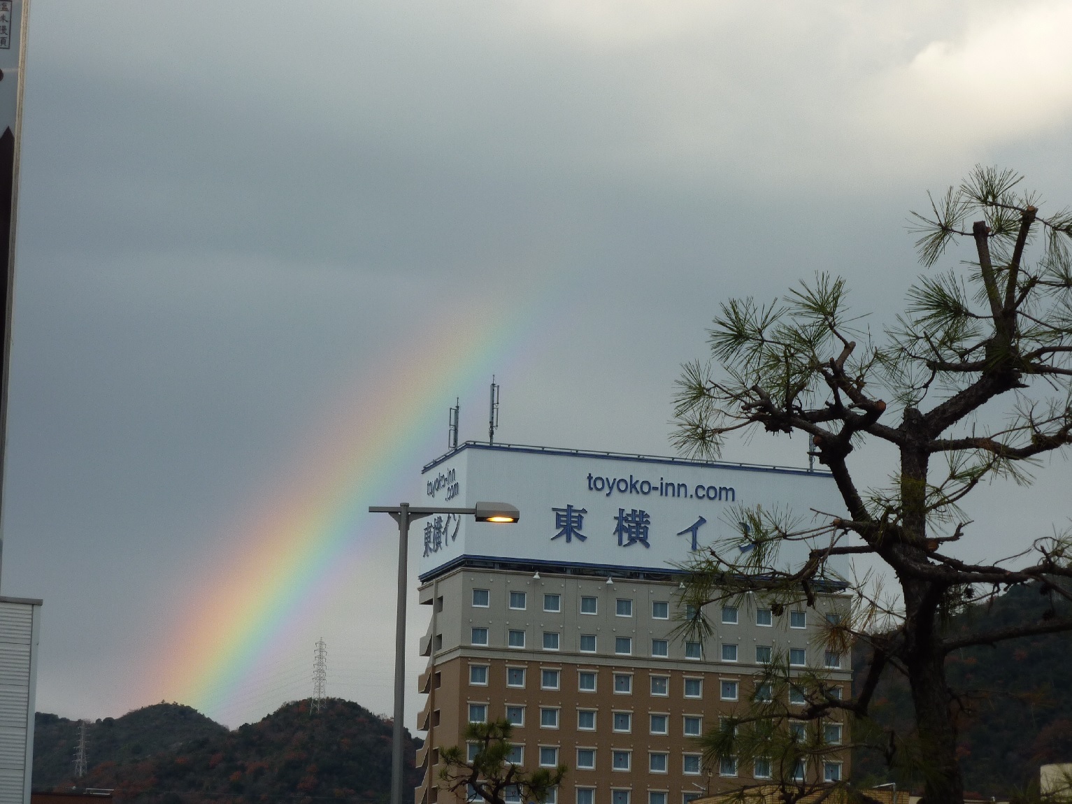 播州赤穂駅の山前には大きな虹がかかり、