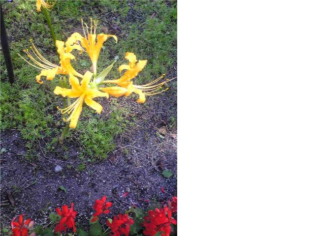 秋の花です。最近は黄色いものや白のヒガンバナがあるのでしょうか?ダリアも雨にあたり綺麗になりました。
