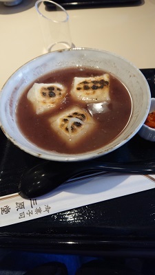 帰って来て甘味処でぜんざいを食べて散歩をして