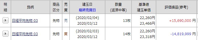 現在の建玉です。
