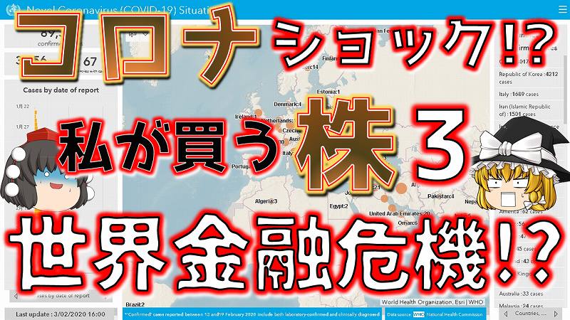 コロナショック!?世界金融危機!?私が買う株3【投資ニュース】世界的感染拡大を受けて私が監視する銘柄紹介 動画本編➡