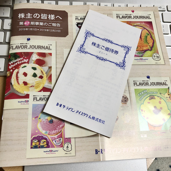 先日株主総会がありましたが、サーティワンアイスクリームの株主優待券が届きました。