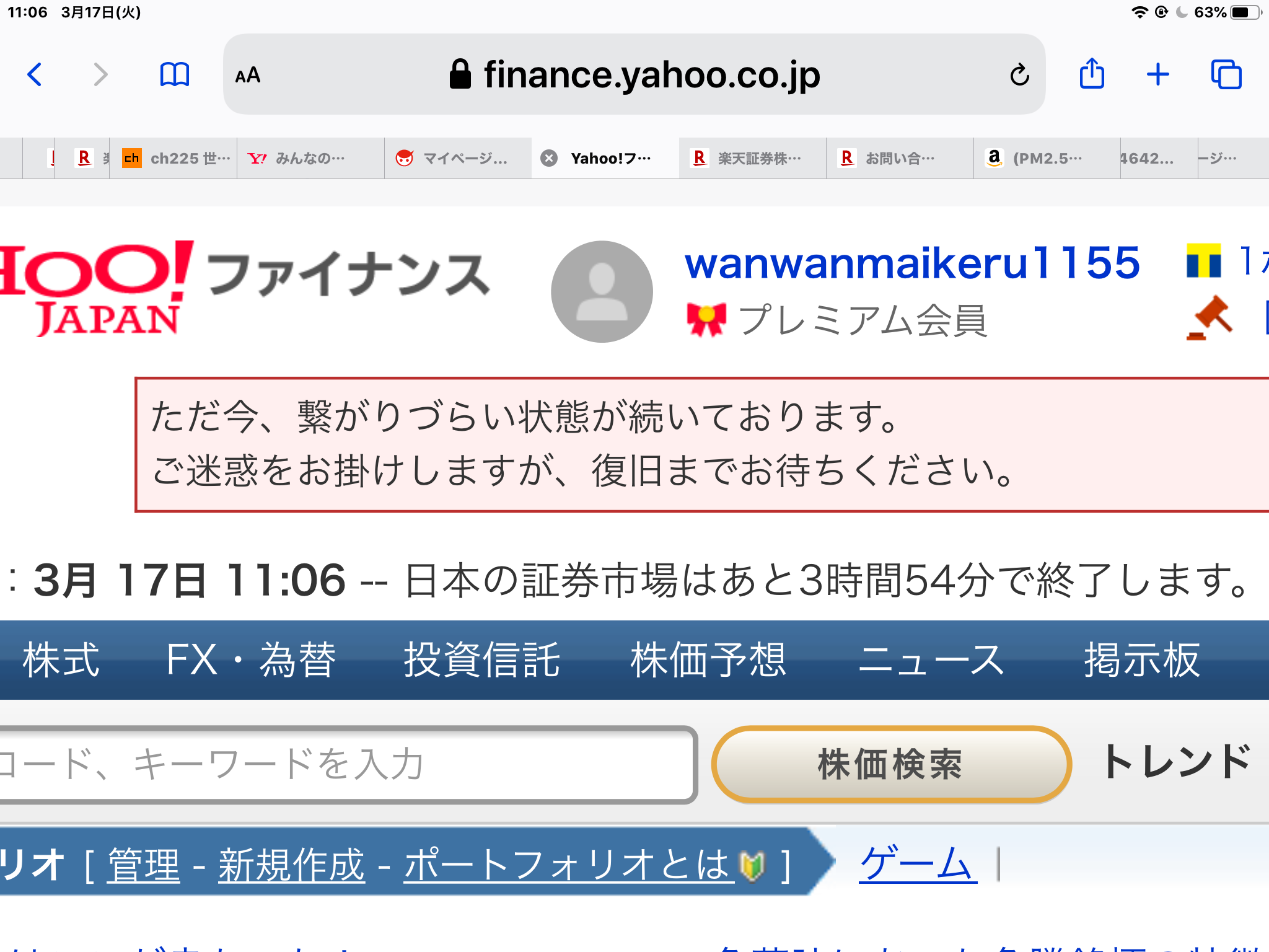 今日はYahooファイナンスのサーバーがダウンしかけてるようですね。