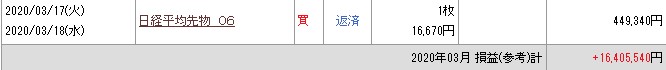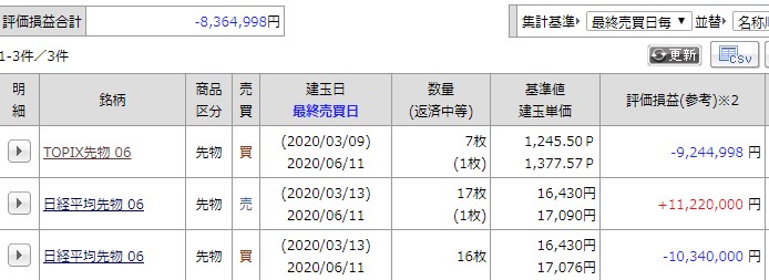 夜間に引け時点での損益と建玉