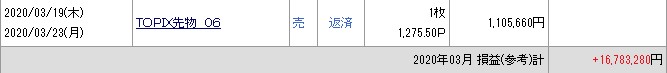 引けに入れ替えしたんで3月の損益は