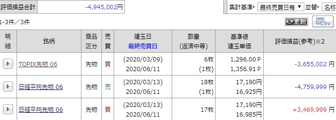 夜間引け時点の損益
