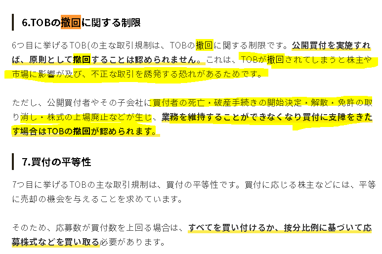 これはアメリカの公開買い付けのルールの所を見ているのですが、