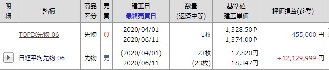 4月分のTopixをロングで1枚持越し。