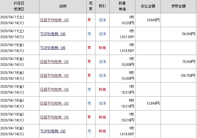 日中から持越しした売り玉と買い玉を手仕舞いしました。