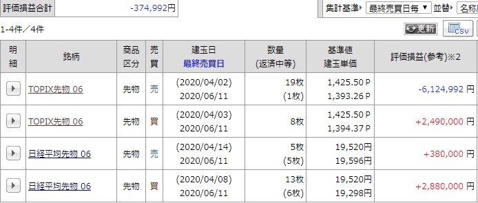 現在の建玉は