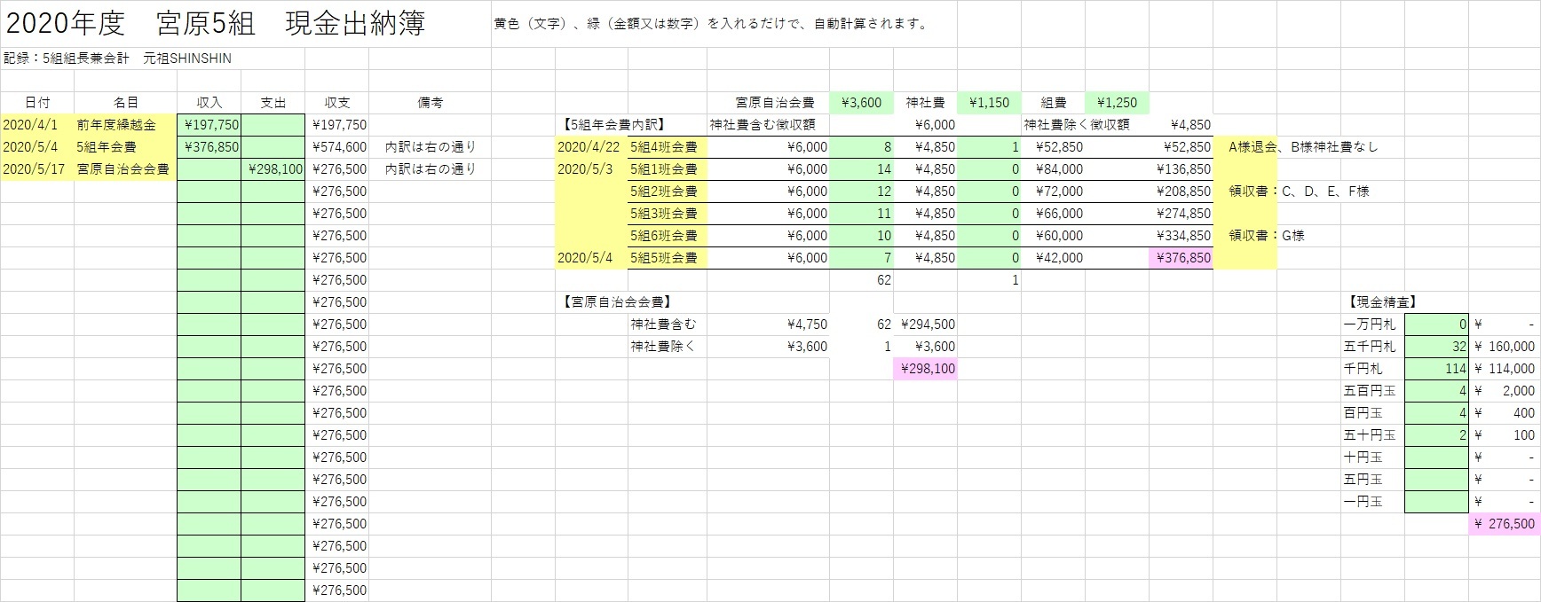 とりあえず、現段階の出納簿は添付した画像のとおり。