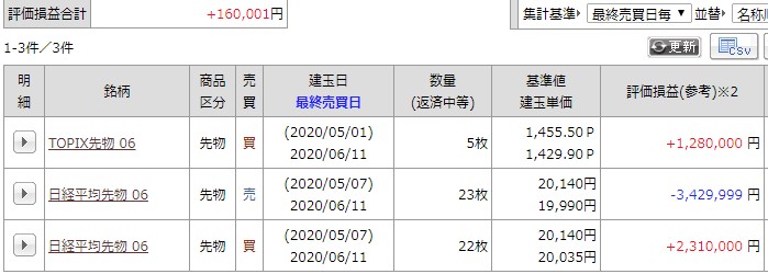 現在の建玉は