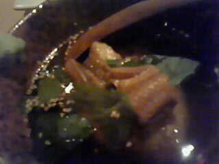3枚目は、穴子とミツバが上に乗っているのですが、中はやきおにぎりのお茶漬け☆