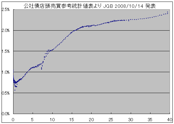 「公社債店頭売買参考統計値表」より、中途の利払いがないものからイールドカーブを作りました。
