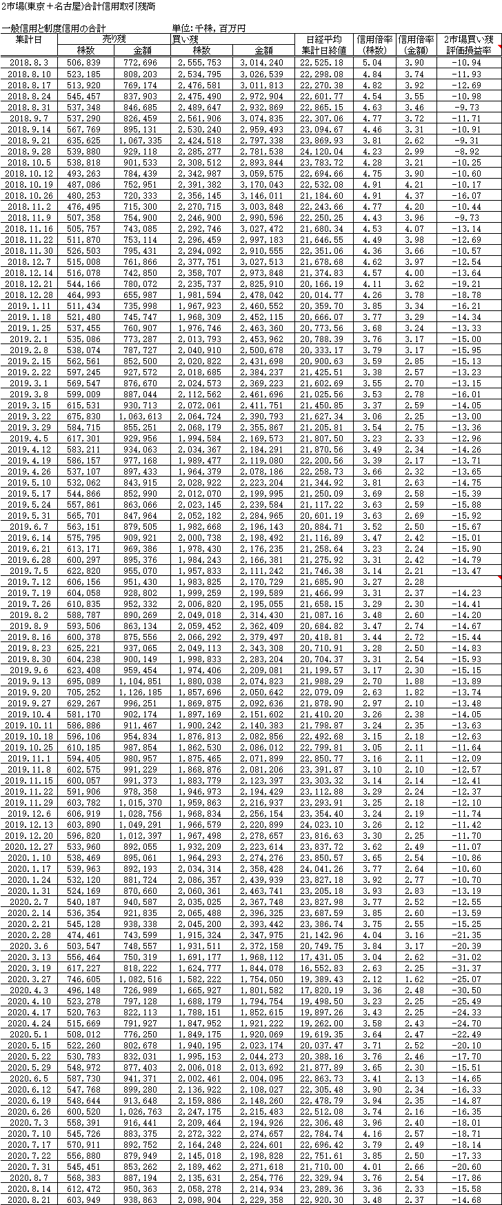 売り残が少し減って、買い残が少し増加ってところ。信用評価損益率は少しよくなっています。