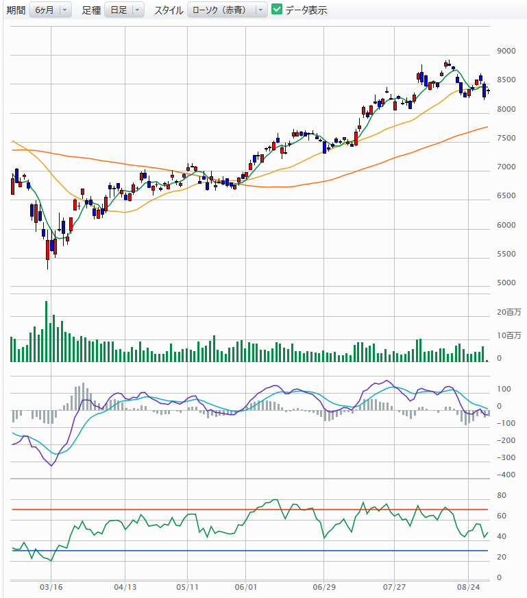 それとチャートを見て、株価9,000円台は行くと判断。